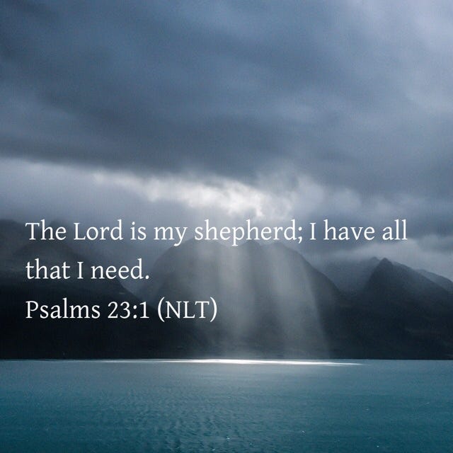 I have all that I need. The LORD Is My Shepherd. My cup overflows with blessings.